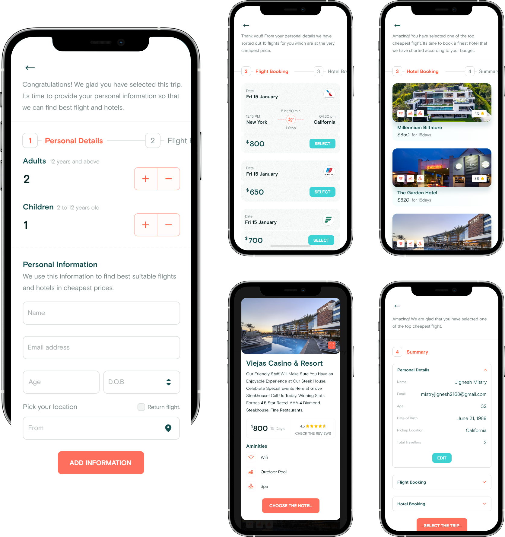 A conceptual design to find the best travel deals at the cheapest price. Finding the best travel deals sometimes is really hectic. Especially when you just not looking to enjoy the best place but you also worried about flight bookings as well as affordable hotel prices. I tried to come up with app design to help users to find a one-stop solution from finding a good destination to flight bookings and affordable hotel bookings.